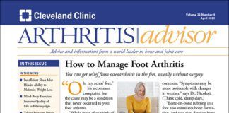 Arthritis Advisor is the timely and instructive monthly newsletter from the experts at Cleveland Clinic that shows you how to control arthritis’ effects and stay active and pain-free for life. As an Arthritis Advisor subscriber, you will always be among the first alerted to new advances and breakthroughs which could benefit and safeguard your health.